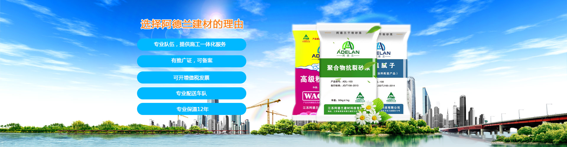 公司是中國質(zhì)量監(jiān)督企業(yè)協(xié)會會員單位,并配有相關(guān)建筑節(jié)能工程師及干混砂漿研發(fā)專業(yè)團(tuán)隊!通過在淮安12年的精心耕耘,總施工面積超過了數(shù)百萬平米,積累了豐富的施工經(jīng)驗,并打造了一支優(yōu)秀、技術(shù)過硬的施工隊伍!同時,公司對產(chǎn)品生產(chǎn)研發(fā)方面也投入了大量的資金、精力,改良優(yōu)化了產(chǎn)品配方,使得公司產(chǎn)品有了顯著的提高,并通過“國家建筑材料測試中心”檢測認(rèn)證!在二零一五年公司獲得«江蘇質(zhì)量誠信AAA級品牌企業(yè)»,公司“阿德蘭”牌干混砂漿獲得了«江蘇省綠色節(jié)能環(huán)保產(chǎn)品»的榮譽稱號!在2017年被中國搜索推選為“中國搜索優(yōu)選品牌”!公司大量供應(yīng)各類建筑用干混砂漿及真石漆(并可提供相應(yīng)的產(chǎn)品檢驗報告及備案證明):發(fā)泡水泥板、勻質(zhì)板、復(fù)合材料保溫板、保溫砂漿、輕質(zhì)抹灰石膏砂漿、抗裂砂漿、加氣塊專用粘結(jié)劑、混凝土界面劑、陶瓷粘合劑、勾縫劑、聚合物防水砂漿、真石漆、內(nèi)外墻乳膠漆、內(nèi)外墻膩子粉等,廠家直供,量大從優(yōu)!公司在江蘇地區(qū)擁有專業(yè)的貨物配送車,為您解決一切的貨物配送問題!